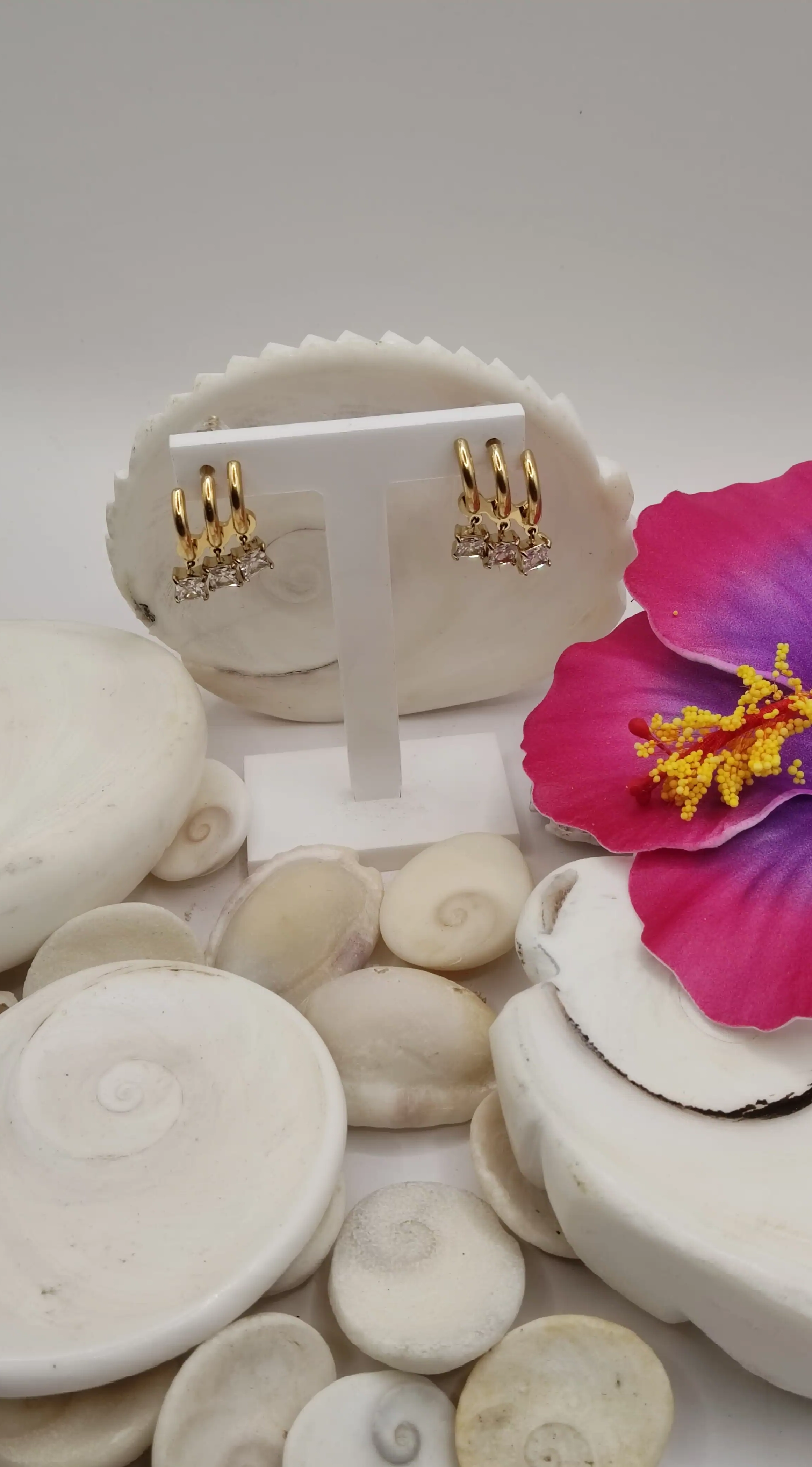 Boucles d'oreilles puce 3 anneaux 3 cristaux carré