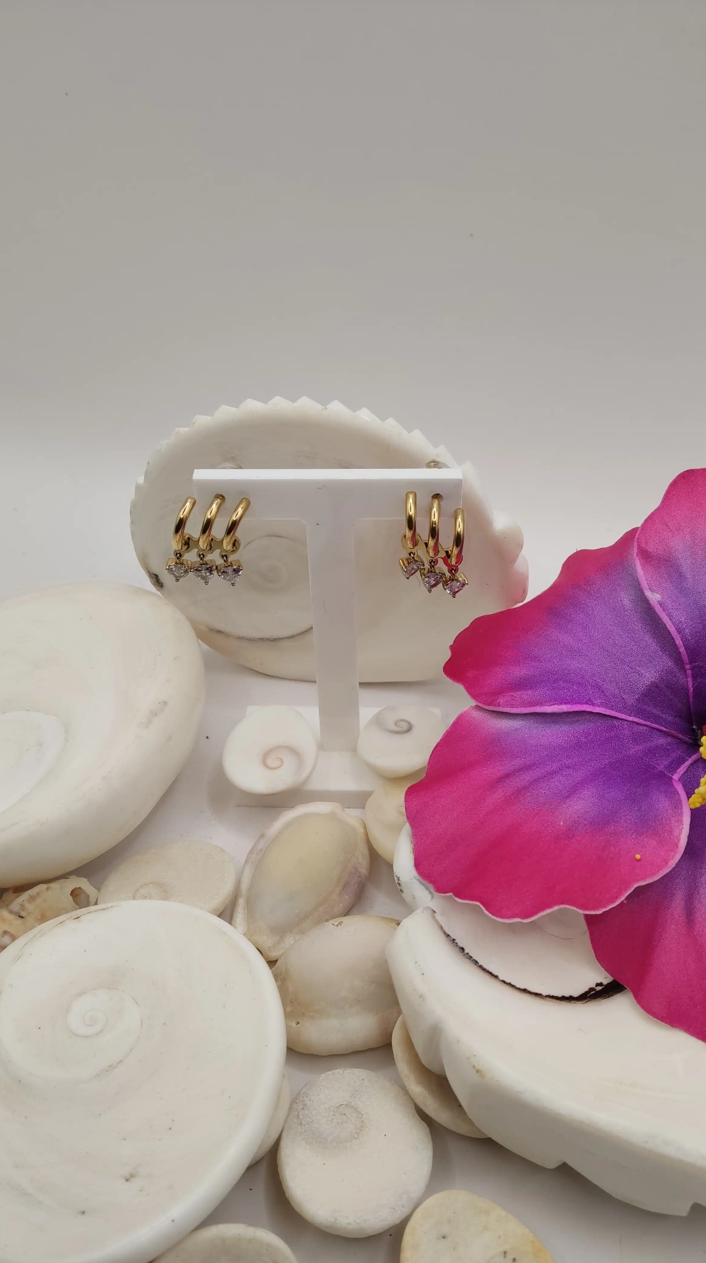 Boucles d'oreilles puce 3 anneaux 3 cristaux cœur